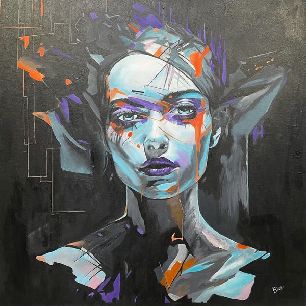 Explore the complexity of human emotions and identity with this piece. Stare into her intense and direct gaze and you can feel the inner turmoil between the rational and emotional mind, a vulnerability that is masked by her calm composure. As human beings we are simultaneously grounded in reality while shaped by abstract emotions and experiences. For what is boundless love, if not an internal struggle between logic and emotion?